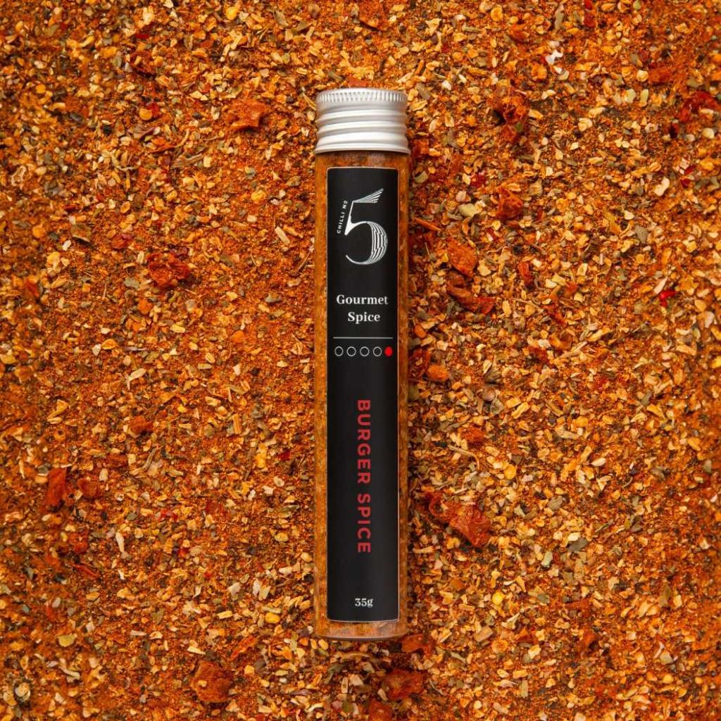 - BURGER SPICE od Chilli No5 je gurmánska koreniaca zmes vytvorená pre milovníkov výrazných chutí, ktorá povýši vaše domáce burgre a ďalšie pokrmy na novú úroveň.